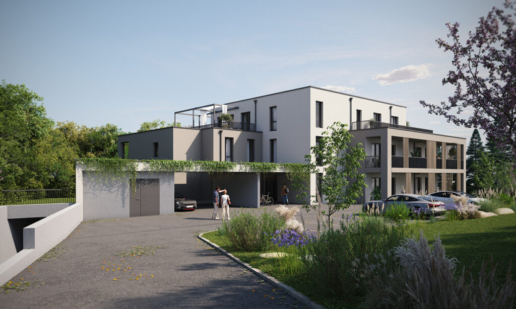Wohnhaus mit 8 Highend-Wohnungen mit 2 oder 3 Zimmern und privatem Garten oder großen Terrassen …